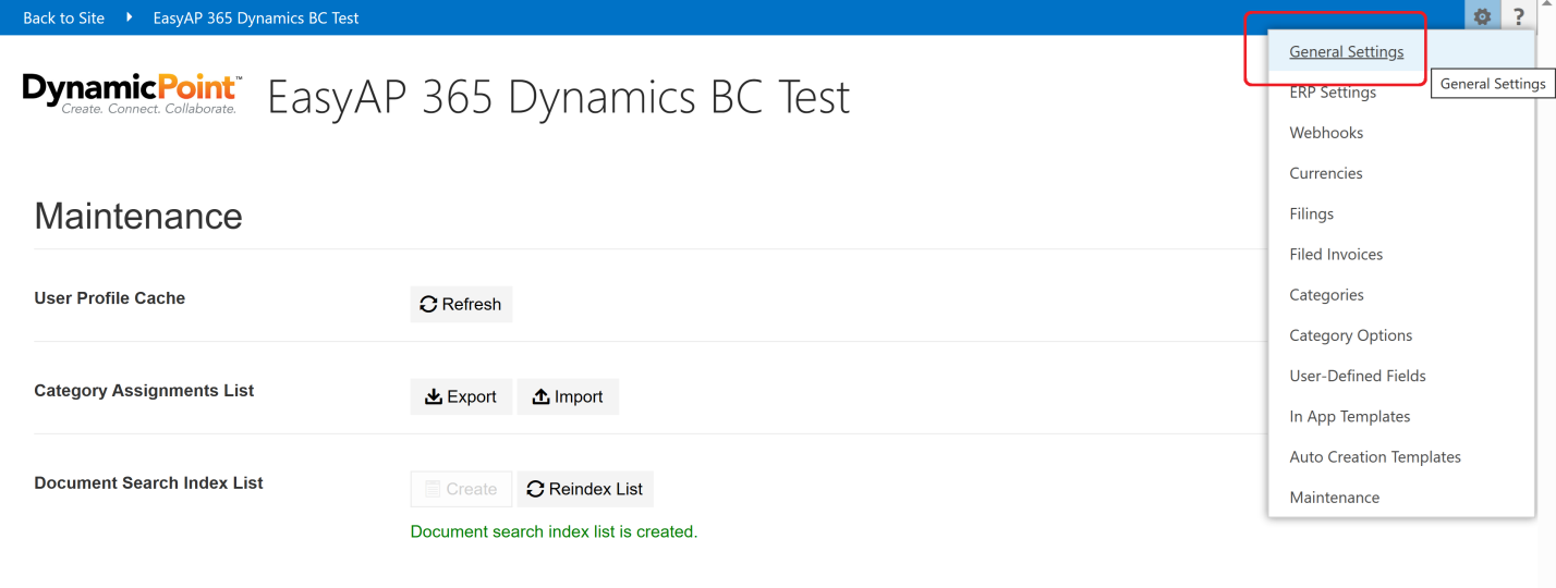 After successful creation, the list needs to be populated with the data of existing invoices. Pressing ‘Reindex List’ button will open configuration dialog for the reindexing operation.