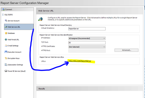 - ReportService – Url of the report server – found in the SQL Server Report Server Configuration Manager.