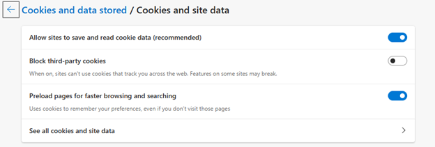 4. To enable third-party cookies, turn off “Block third-party cookies”.